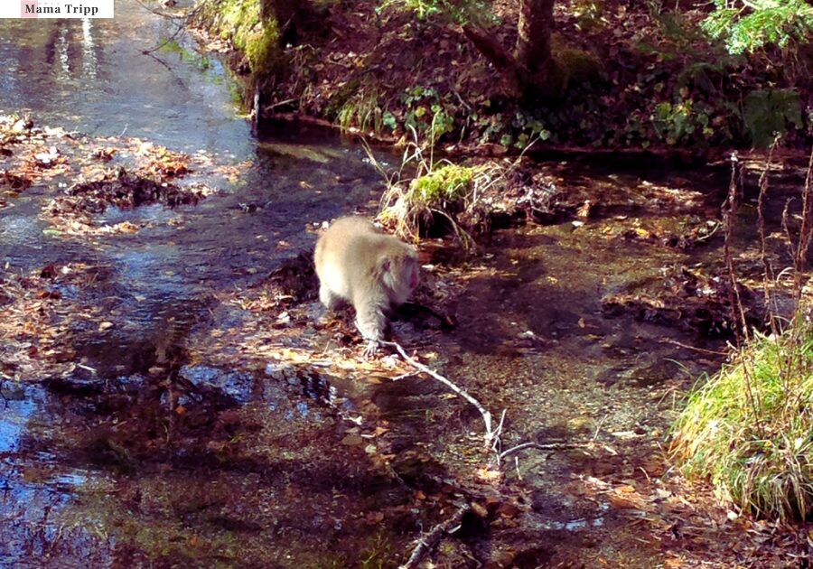 田代橋の近くで野生のサルに遭遇!とっても可愛いけれど、ここは国立公園。野生動物へのエサやりは法律で禁止されています。写真だけ楽しんで、距離を保ちつつ静かに見守りました。
