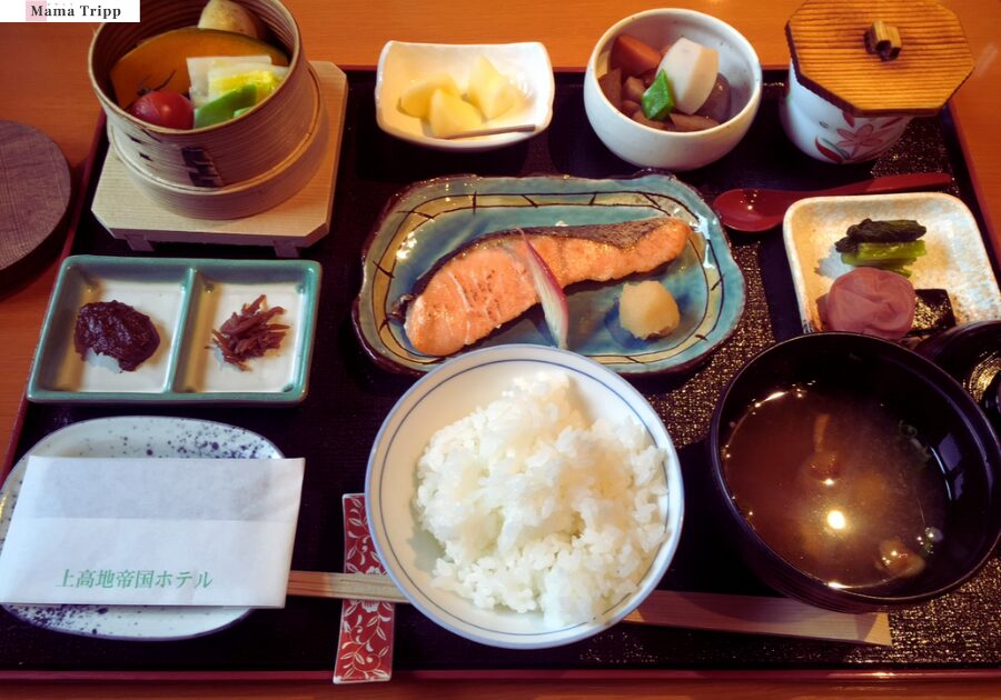 朝食は和定食。焼きたての鮭、ふるふるのだし巻き、湯気立つ味噌汁に、白ごはん or お粥をチョイス。子どもが大好きな鮭をごはんにまぜて、もりもり食べてくれました。お腹も心も満たされて、「さあ出発!」と朝からご機嫌にスタートできます。