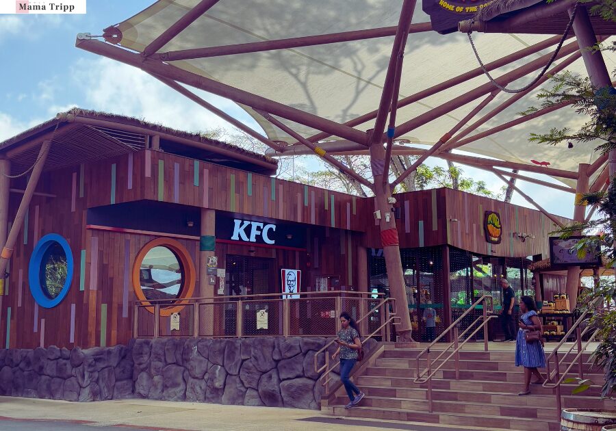 爬虫類館から少し奥に進むと遊具・お土産ショップエリアを発見。また、ケンタッキーもあったので、少し早めのランチをとることにしました。 8時半に入場して、この時点で10時半ごろ。まだ半周もしてません。