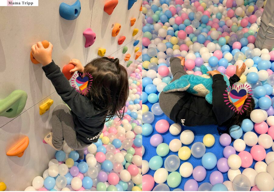 高いところを歩けるネット遊具や、壁をよじ登るボルダリングも人気コーナー。娘は最初「怖い」と言って途中で引き返してきましたが、それでも全然OK。無理させずに「見るだけ」でも十分楽しんでいました。