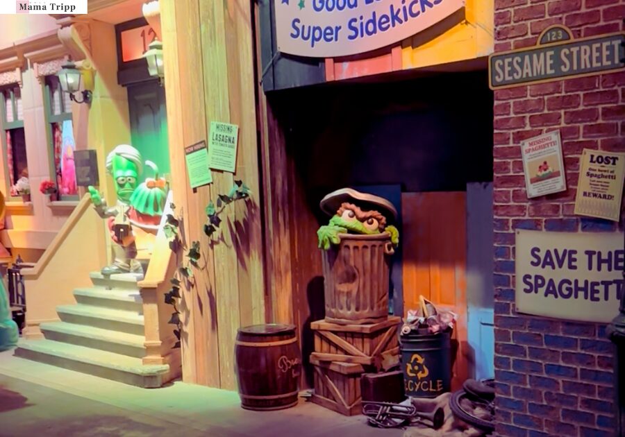 中でも息子が夢中になったのが、ライド型アトラクションの 「セサミストリート・スパゲッティ・スペース・チェイス」。ストーリーは、エルモと一緒に宇宙人が盗んだスパゲッティを取り返す冒険に出かける、というもの。