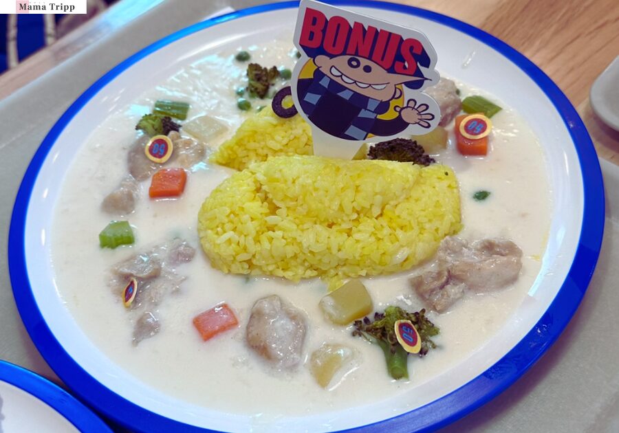 Stuart’s Japanese Curry Karaage(スチュアートの和風カレー唐揚げ)。スチュアートの形のライスが可愛い!子どもでも食べられる辛さでした。